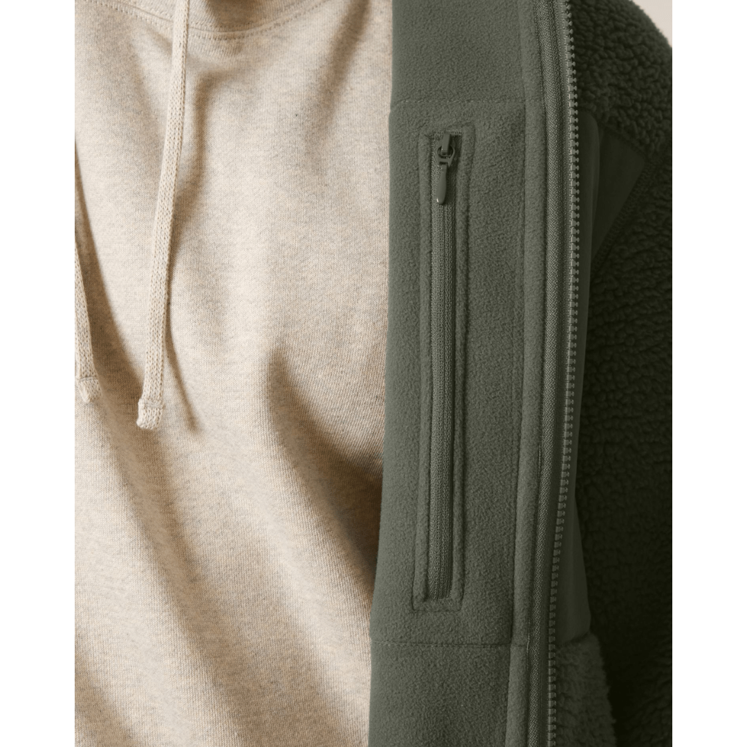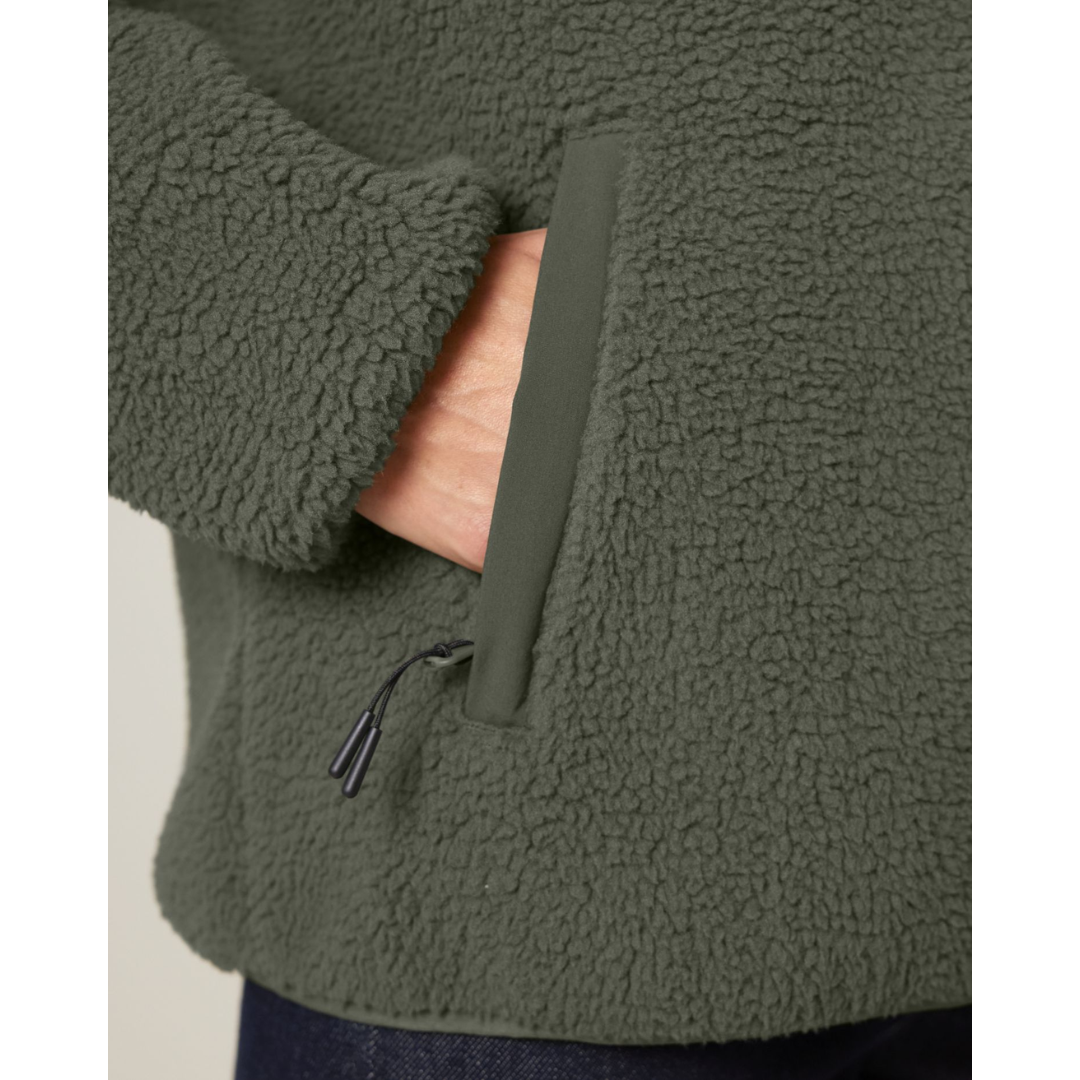 Gefertigt aus 100 % recyceltem Polyester und ausgestattet mit einer weichen Polarfleece-Innenseite, hält sie dich warm, ohne dich einzuengen. Praktische Details wie seitliche Reißverschlusstaschen, elastische Einfassungen und ein robuster Frontreißverschluss sorgen für Komfort und Alltagstauglichkeit.